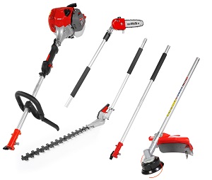 The 28MT benefits from a low vibration throttle control for more comfortable use over longer periods of time. The multi-tool comes complete with an all new 580mm hedgetrimmer; a quick fit 1m extension tube; grass trimmer/brushcutter and an advanced articulated pruner head.