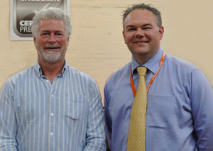 Mick Shaw (left), Ransomes Jacobsen's newly appointed CPO Sales Manager with Customer Care Director Jason King