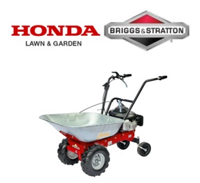 The ‘Carry’ has an 85 litre galvanised tank equipped with tipping gear. A choice of Honda or B&S Power Units embraces 1 forward and 1 reverse gear. Automatic brake stopping system.