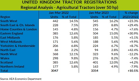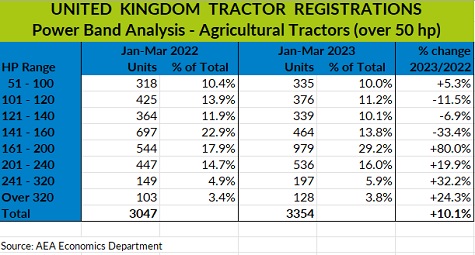 Last week we reported that the AEA had released figures that showed that UK agricultural tractor registrations were 10% higher in the first three months of 2023 than in the same period last year.