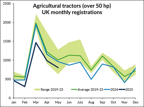 The year-on-year decline was similar to that seen in the previous four months, with this year's total of 4,017 machines being just under 1,000 fewer than in January to May 2024 (-20%).