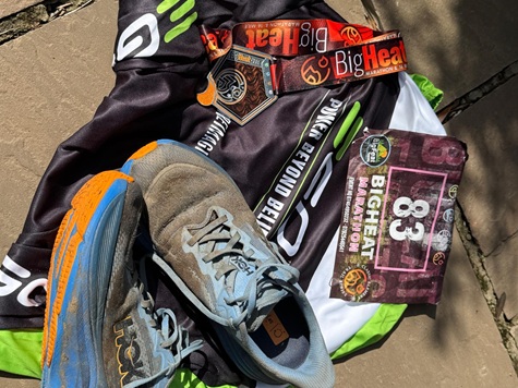 I'm thrilled (and slightly soggy) to report that I've successfully completed the BigHeat Trails (FIRE) Marathon. It seems my desperate pleas for rain actually worked, because the heavens opened up this weekend, giving us a much-needed break from the scorching weather. Perhaps I do know a rain dance after all!
