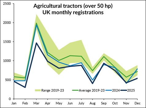 December's figures brought the total number of agricultural tractors registered last year to a modest 8,791 machines. That is 14% fewer than during 2024 and is the lowest figure since AEA began monitoring tractor registrations in the 1960s.