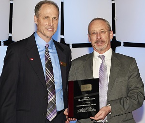 Reesink Turfcare managing director David Cole, right, collects the outstanding performance award from Toro’s Brad Nagel