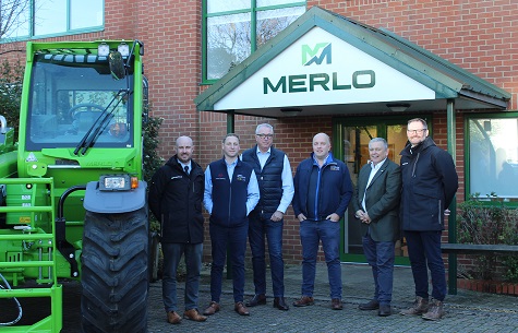 L-R; Owen Buttle, national sales manager, Merlo UK; Tom Jobling, machinery director, Ian Gate, machinery consultant and Dale Shaw, dealer principle, Carr’s Billington; Shaun Groom, general manager & Euan Thomson, regional sales manager, Merlo UK