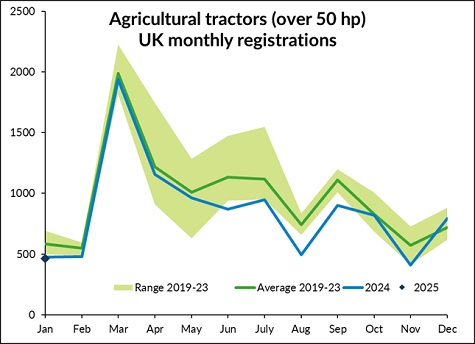 According to figures released by the AEA, for the second year in a row, the number of agricultural tractors registered in January was well below average.