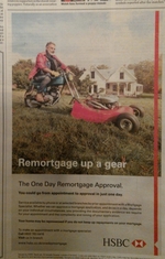 How many of you have seen the ad currently being run in The Times and elsewhere by HSBC? Frankly I was shocked when I saw the advert which appears to condone the reckless adaptation of two potentially dangerous machines - motorcycle to a lawnmower.