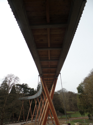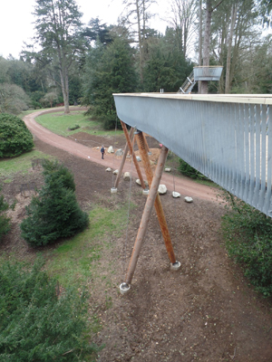 The impressive walkway structure is made from Larch and Douglas Fir and includes more than 20 pairs of timber legs, ranging in size from 2.5 metres up to 14 metres tall.