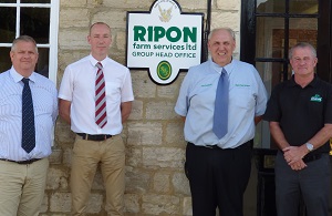 L-R: Phil Gregg, Aftersales Director Ripon Farm Services, Stephen Falcus, Kramp Account Manager, Tim Petfield, Group Parts Manager, Ripon Farm Services, Richard Charnley, Rock Oil