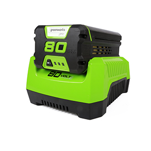 The power is delivered by the Greenworks' 80V battery packs, available in 144Wh, 288Wh and 900Wh high capacity back pack varieties, giving incredible run times, and fast charging means your second battery is fully charged before the first pack has run down.
