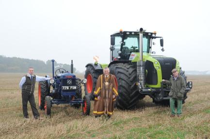 John Reynolds, the Master of the Worshipful Company of Farmers, is flanked by the 1952 Fordson, which will be driven in the Lord Mayor’s Show by its farmer owner Andrew Streeter, and the Xerion 5000 which will be driven by Frazer Jolly, farm manager of South Pickenham Estate.