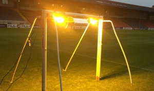 High times for Rochdale AFC recently with their use of cannabis lamps seized by the police, to cultivate the grass on their pitch. The BBC reported how the lights have been used to make special rigs at their Spotland ground. Donated to the club by Sgt Andy Fern of Greater Manchester Police, head groundsman Oli Makin told the BBC the lights would've cost the club between £20,000 and £30,000. He said, "I can't thank the police enough. It has saved the club a fortune and the players will be happy, especially the goalkeeper." The below picture by Oli appeared on the BBC website: