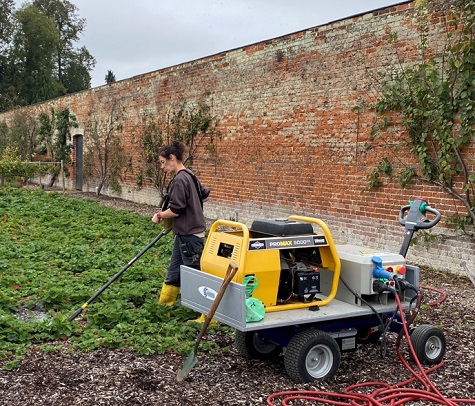 These machines use hot water insulated by foam. It is the heat in the hot water that kills the weeds. Environmentally friendly foam, made from natural plant oils and sugars, acts as an insulation blanket over the top of the hot water ensuring the heat is not lost as quickly to the atmosphere. Heat from the hot water is “trapped” on the plant for longer, by the foam, thus giving more time for the heat to work on the weed. Heat penetrates the plant’s waxy outer layer of the leaf, travels down the stem, into the root system, effectively cooking the plant. Hot foam can also kill some surrounding seeds and spores to reduce future regeneration. No specialist clothing or hearing protection is required. Training is a requirement under PUWER.