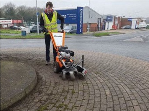 Brushing plays a very important part in weed control of highways, pedestrian walkways, car parks, parks and gardens as part of an integrated management approach. Modern powered sweepers are highly sophisticated and can operate on a variety of hard and delicate surfaces. Weed brushes can only work on hard surfaces and may damage delicate or soft surfaces. They remove detritus from the surface, depriving weeds of the required growing medium, damage the leaf, reducing ability to photosynthesise and in some situations, it can remove the whole weed plant including the root.