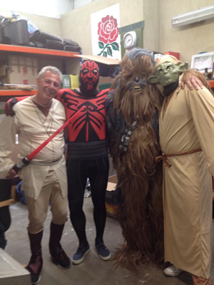 Reported widely this weekend was the news that conservation charities are warning that the widespread use of artificial turf on Britain's lawns is damaging the country's wildlife. As real grass disappears creatures which once found shelter there are being squeezed out. Also less real grass is bad for the environment in that less carbon dioxide is produced. Joy Wallis of the Dorset Wildlife Trust was quoted in the Daily Telegraph as saying, "Creatures can’t survive in the countryside because it is so full of chemicals and so they retreat into gardens. But birds get absolutely nothing from artificial grass, they can’t dig for worms or anything like that. “An increase in the use of artificial grass will just add to the decline of wildlife. It seems a shame that people feel they haven’t got the time or the inclination to look after a lawn.” A self-styled 'Guerrilla Groundsman' is cleaning around Cambridge city centre, in one-man public maintenance campaign reports the Cambridge News. Taking his cue from 'guerrilla gardeners' who plant flowers in public spaces, the mystery man instead does maintenance jobs such as refitting and cleaning up road signs and making them point in the right direction, brightening up dirty bridges, repainting parking signs, clearing brambles and footpaths and sweeping up rubbish. 'Bob' told the local paper "I would quite like it if more people did it. I just see a place that looks dirty and needs some work or looking grim and get to work cleaning it up. It's nice when people walk by and say thanks, like when I was cutting a bush that was hanging over a footpath." And finally, the Marriot London 7's took place this weekend at Twickenham. The event is traditionally a big carnival atmosphere with fancy dress galore - and this year that wasn't just limited to the fans in the stands. Head Groundsman for the RFU, Keith Kent (), posted the below picture on Twitter yesterday of himself and some of the crew decked out as some of the greatest heroes (and one villain) from a galaxy far, far away.