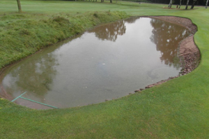 Little Aston Golf Club, at Sutton Coldfield in the West Midlands, experienced a bunker 'wipe-out' recently when an unexpected storm deposited over five inches of rainwater in an hour.