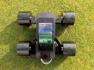 It operates using a real Pro V1 golf ball which sits directly beneath the smartphone or iPod holder and mimics a golfer`s ball. The ParryMeter app records 2000 readings per run as the device rolls across the surface and the phone's accelerometer and gyroscope measure every single vertical and lateral deviation. The user can also opt to view the ball roll in real-time as they walk across the green. Results are measured in gravities and recorded in a specially developed app where they can be analysed, interpreted and shared.