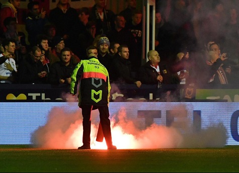 The BBC reported that EFL chief executive Shaun Harvey said: "Taking pyrotechnics into our grounds is a criminal offence.