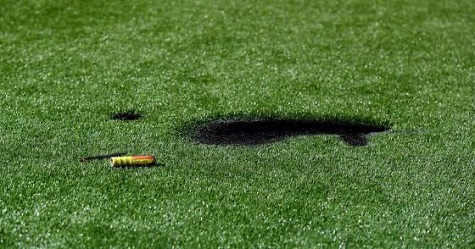 Broadcast live on the BBC, Hyde's game against the MK Dons in the FA Cup first round was eventually played on the 3G surface, but players had to contend with some significant holes which got burnt into the playing area.