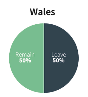 Wales was split equally, with a 50-50 vote.