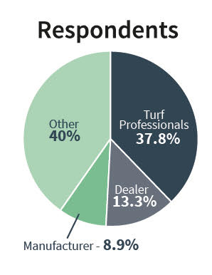 We also were interested to get a sense of who was voting in our anonymous poll and asked what section of the industry you represented - Turf Professional, dealer, manufacturer or other. The largest group of respondents identified themselves as 'Other' (40%), Turf Professionals represented 37.8%, dealers 13.3% and manufacturers 8.9%.