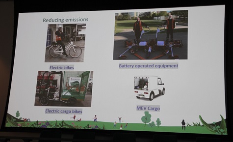 His colleague, Andrew Miller, gave examples of how they have improved the efficiencies of the work force by investing in battery powered, bikes, vehicles and machinery to help them do their job - while at the same time reducing their carbon footprint.