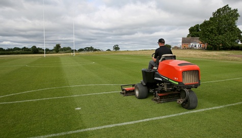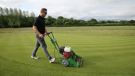 I’d say he is certainly doing a good job considering they were only sown down in March. I was lucky enough to get some photographs of him mowing the football/ rugby pitch and golf surfaces using a Dennis FT cassette pedestrian mower and a Jacobsen ride-on triple mower.