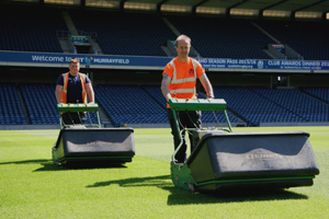 Jim and his three members of staff certainly have their work cut out at the stadium. Not only do they attend to the main pitch – a brand new Desso GrassMaster, but they also look after three grass pitches consisting of fibre sand, a synthetic pitch and all of the stadium’s surroundings. With such a demanding workload, Jim believes that the Dennis G860 undoubtedly helps the team keep on top of things.