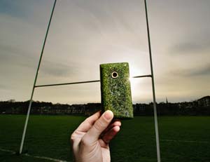O2 have created a recycled smartphone, produced from grass clippings taken from the rugby pitch at Twickenham. Created in collaboration with designer Sean Miles, the ‘grass phone’ fully-functioning prototype is the UK’s first phone made from turf, report designboom.