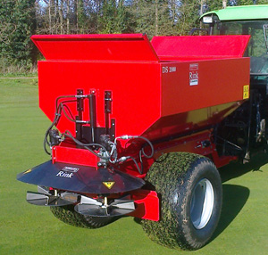 The Rink DS2000 topdresser has a spreading width of 2 to 15m with a spreading thickness of 0.5 to 15mm. The hopper capacity is 2.0m3 level with the whole unit weighing only 820kg meaning it needs only a tractor size of 35hp.