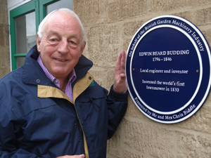 A plaque commissioned by Turf Pro Publishing Editor Chris Biddle and his wife Trish, has been erected in Stroud to commemorate the site where Edwin Beard Budding invented the world's first lawnmower in 1830. Budding's workshop is long gone, however situated where it once stood is the Stroud Brewery who appropriately produce a Budding Ale. The blue plaque now sits in a prominant position on the front wall of the brewery, reminding all of the historical significance of the site.