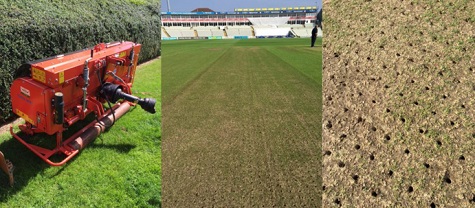 The ability of fast tining cricket squares, perfected by Keith Exton of Perfect Pitches using a Wiedenmann XF Terraspiker. Keith himself was head groundsman at Glamorgan CCC and over the years has helped renovate and reconstruct hundreds of pitches and developed and installed both natural and artificial cricket net areas.